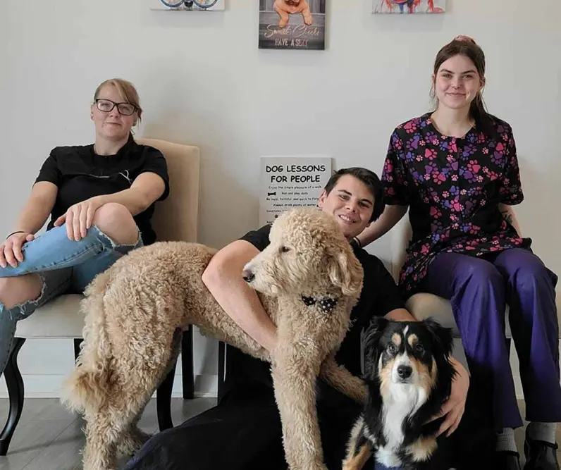 Hello, I’m Shadow (center), the store owner. I have been working with animals since I was 16 years old and found my passion in grooming. I decided to open this salon to create a calm and inviting environment for the babies out there that are scared to go to the groomer. We are passionate about renewing a healthy association for the grooming process for staff, customers, and most of all, their fur babies.